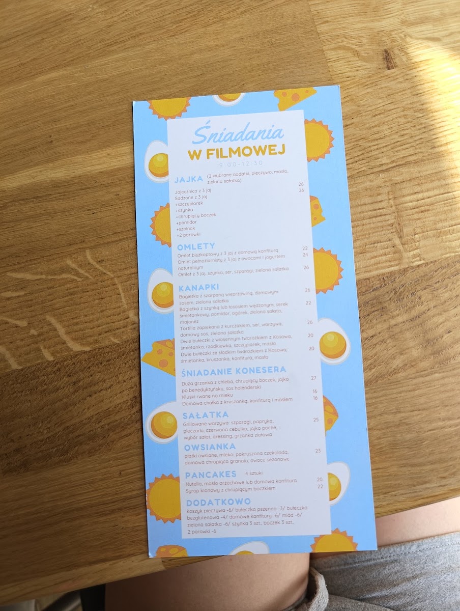 Filmowa art café Menu